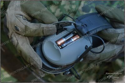 На одной чашке расположен тумблер включения и регулировки громкости, здесь же имеется 3,5-мм линейный аудио вход для подключения внешнего оборудования (радиостанция, плеер и т.д.). На другой чашке с наружной стороны расположен батарейный отсек под две «мизинчиковые» батарейки ААА. Батарейный отсек Peltor RangeGuard имеет удобное расположение на внешней стороне чашки раковины и страховочный элемент для крышки отсека. На обеих чашках имеются направленные микрофоны. Утопленные микрофоны защищены от воздействия ветра. Такая конструкция снизила количество помех, существенно улучшив качество звука. 3 коротких сигнала предупредят вас о низком заряде, они же будут поданы в случае, если защитные показатели наушников снижаются.