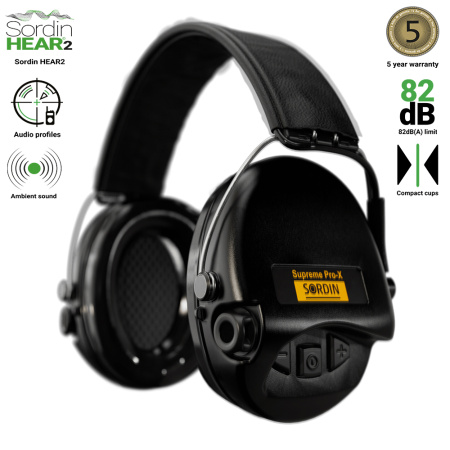 Активные наушники Sordin Supreme Pro-X поставляется с усовершенствованной звуковой системой SordinHEAR2, которая включает в себя четыре аудиопрофиля, которые еще больше улучшают качество звука и адаптируют звук к различным ситуациям.