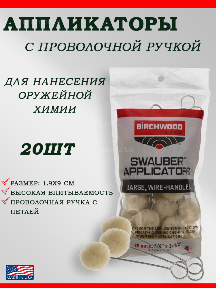 Аппликаторы имеют высокую впитывающую способность, что позволяет им быстро и равномерно распределять вещество по поверхности оружия. А благодаря проволочной рукоятке они удобны в использовании и не скользят в руке.