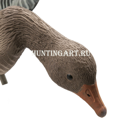 Электромеханический серый гусь управляется с помощью ДУ пульта. Складные крылья. Кормящаяся поза. Устанавливается на стекловолоконную стойку. Сумка для переноски в комплекте. Аккумулятор в комплект не входит!