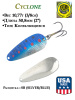 Блесна Cyclon - одна из старейших приманок фирмы Thomas, выпускающаяся уже более 50 лет. Изготавливается из латуни. Заметность блесны для хищника обеспечивается рельефным рисунком, имитирующим чешую кормовой рыбы, и покрытием ювелирного качества.