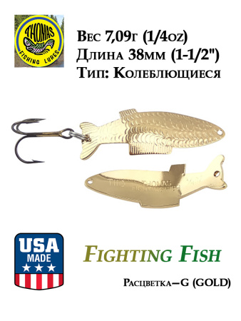 Колеблющиеся блёсна Fighting Fish весом 1/4 oz от Американской компании Thomas.