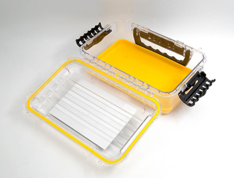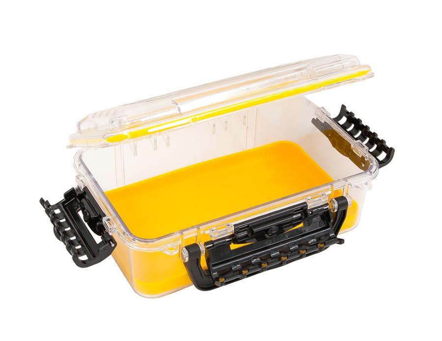 Бокс Waterproof Case (3600) снабжен, патентованными замками (3 шт.) черного цвета, которые надежно закрывают крышку и уплотненным кольцом по периметру. Внутренняя резиновая подкладка ярко желтого цвета, обеспечивает содержимому бокса сохранность во время транспортировки. Выдерживает погружение на глубину до 1 м на время до 30 минут. Переноска бокса осуществляется за удобную пластиковую ручку. Есть 2 проушины для навесных замков или пломб. Идеальный вариант для рыбалки, охоты, туризма, кемпинга.