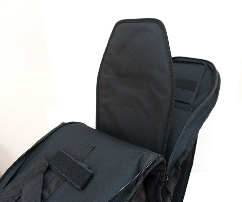 Центральным элементом рюкзака является съемный мягкий разделитель, который разделяет и защищает оружие при транспортировке. Мягкие карманы для фиксации оружия обеспечивают безопасность оружия во время его транспортировки, а регулируемые ремни гарантируют, что оружие будет надежно закреплено внутри рюкзака.