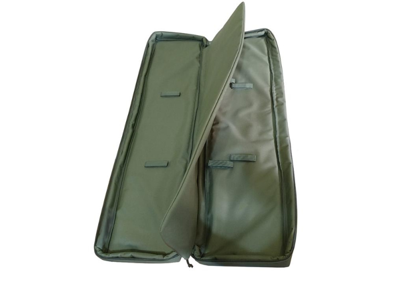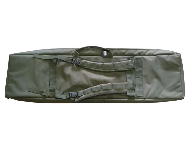 Чехол имеет продуманный дизайн с разделителем основного отделения на две отдельные секции, позволяя перевозить две единицы длинноствольного оружия одновременно. Внутри чехла предусмотрены крепления с липучкой «велкро» для дополнительной фиксации оружия. На одной из внешних сторон находится отделение, под котором размещены лямки для переноски на спине. Когда они не нужны, их можно убрать внутрь чехла, чтобы не мешали, а при необходимости легко достать и использовать для переноски чехла как рюкзак.