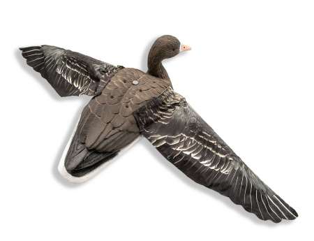 Чучело имеет размах крыльев - 104 см. Корпус чучела выполнен из мягкого пластика, а крылья - из ткани. Стойка имеет высоту 60 см и выполнена из стекловолокна. Чучело компактное и легко складывается, что удобно для транспортировки. В комплекте идет пульт дистанционного управления для управления движениями крыльев и сумка для транспортировки.