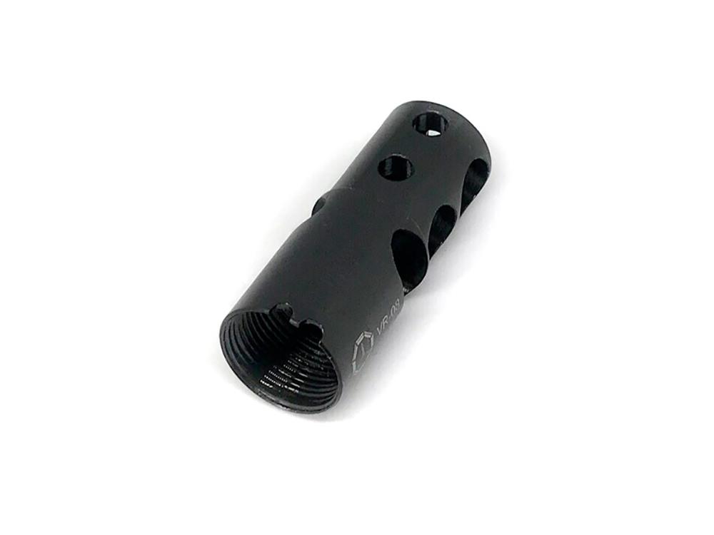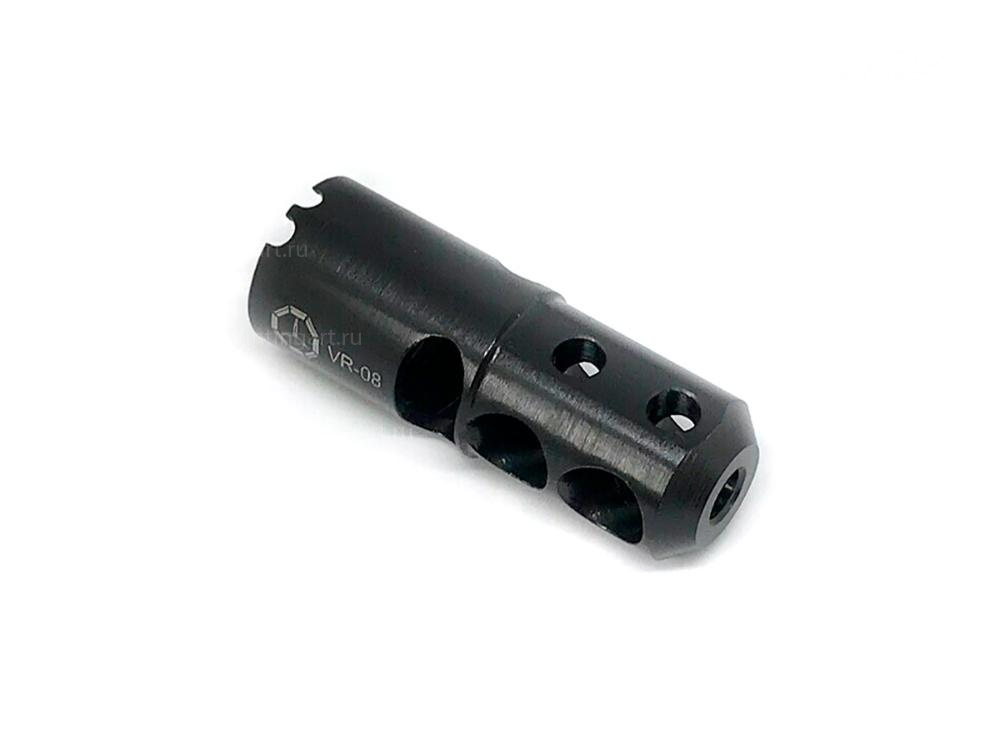 ДТК VR-08 имеет одну активную и две реактивные камеры, благодаря чему эффективно снижается отдача, а два компенсаторных отверстия обеспечивают снижение подброса ствола. В VR-08 (в отличие от VR-08T) отсутствует первая перегородка. Это изменение исключает прорыв газов за резьбу. Также преимуществом ДТК является возможность чистки ствола не снимая его, так как первая камера начинается на одном уровне с дульным срезом.