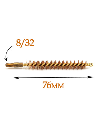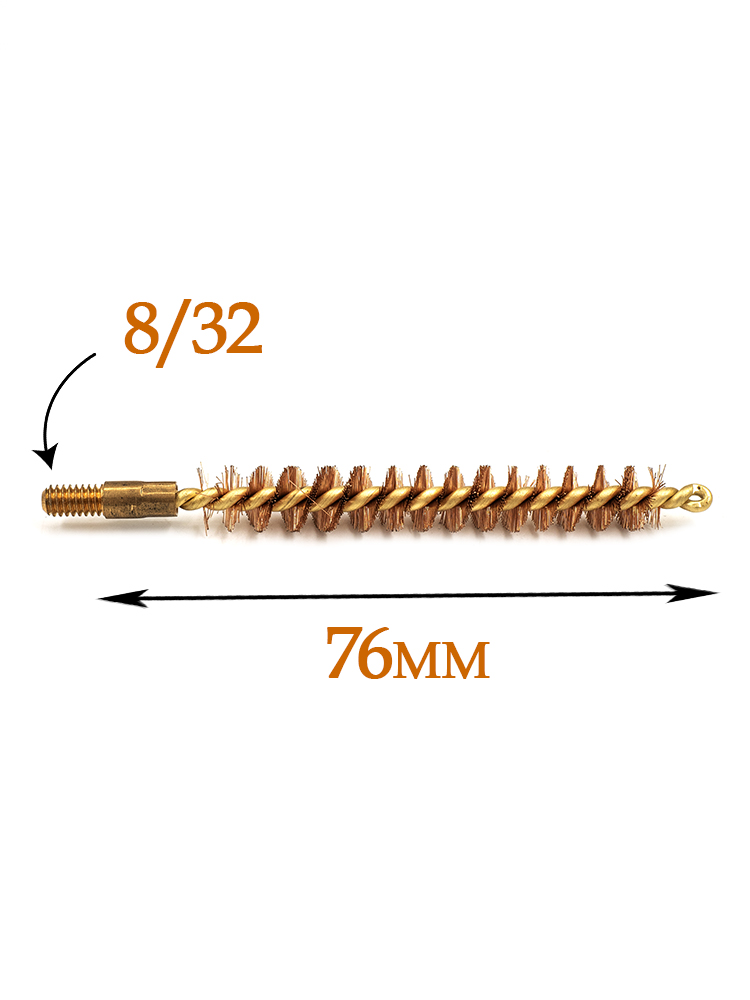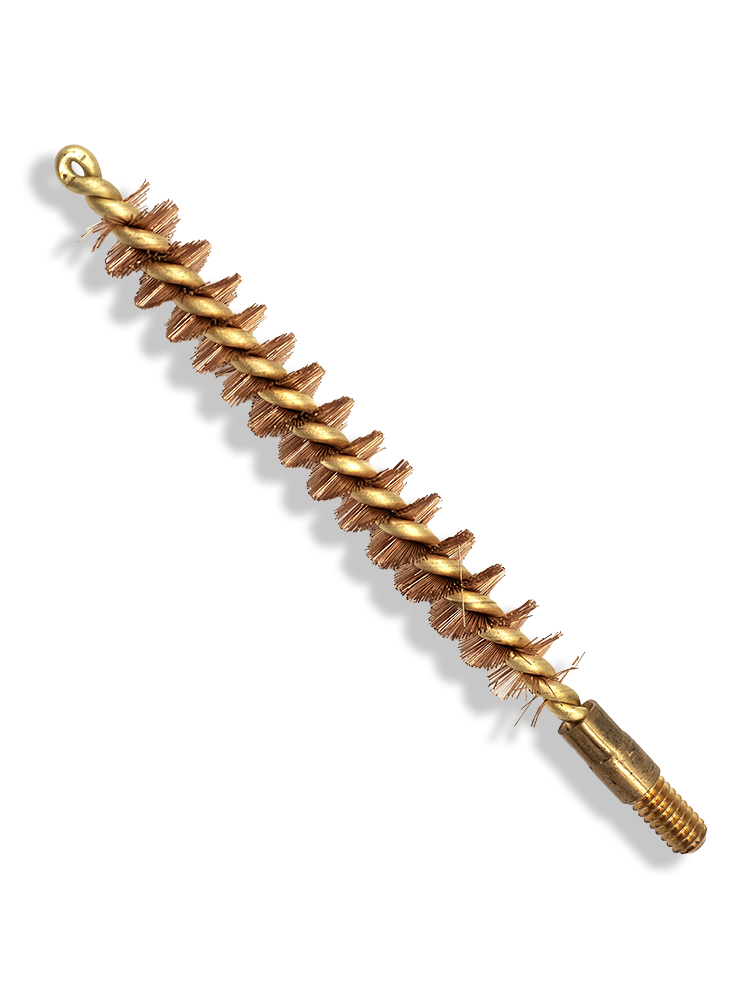 Ершик из бронзы с латунной основой и петелькой на конце, центральный стебель из витой латунной проволоки с щетиной из бронзы. Предназначен для очистки стволов охотничьего оружия.