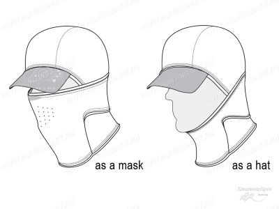 Благодаря оригинальной конструкции может быть собственно как кепка с маской или кепка с шарфом при необходимости. Это позволяет охотнику уменьшить количество используемой одежды для охоты и комфортно подстраиваться под погодные условия. Кепка создана с использованием ультра-легкого нанофлиса, отличающегося бесшумностью и непродуваемостью. Размер головного убора может регулироваться (в меньщую сторону), специальными утяжками.