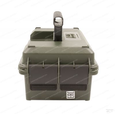 Для удобства переноски оснащается складной рукоятью. Защита от воды обеспечивается засчет резинового уплотнителя под крышкой. Сама крышка надежно фиксируется двумя защелками. От несанкционированного доступа, содержимое можно уберечь, повесив замок, для чего имеются специальные петли O-ring.