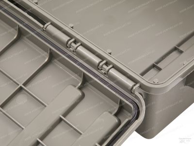 Короб, выполненный из высокопрочного полипропилена, имеет стандартный вид и форму. Ящик герметично закрывается крышкой с помощью пластиковых защелок Snap-Lock. Специальное уплотнительное кольцо на крышке, защищает от проникновения воды, пыли и грязи внутрь. Есть отверстия под пломбы или навесные замки. Очень прочные ручки по бокам позволяют легко переносить снаряжение. Дизайн конструкции позволяет штабелировать несколько ящиков, размещая их друг на друге, а специальные пазы предотвращают соскальзывание. Есть 4 точки для крепления на квадрациклах ATV.