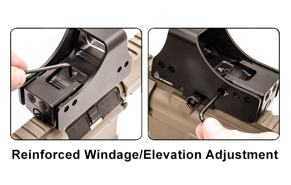 В конструкции коллиматора используется платформа TS (True Strength), которая выдерживает как прямую, так и обратную отдачу. Благодаря герметичному корпусу, прицелу не страшен ни туман, ни дождь. Конструкция противоударная, и противотуманная, подойдет для любого оружия. Корпус коллиматора оснащен дополнительной защитой корпуса. Изготовлен из матового черного высокопрочного анодированного алюминиевого сплава, что обеспечивает повышенную прочность в полевых условиях.