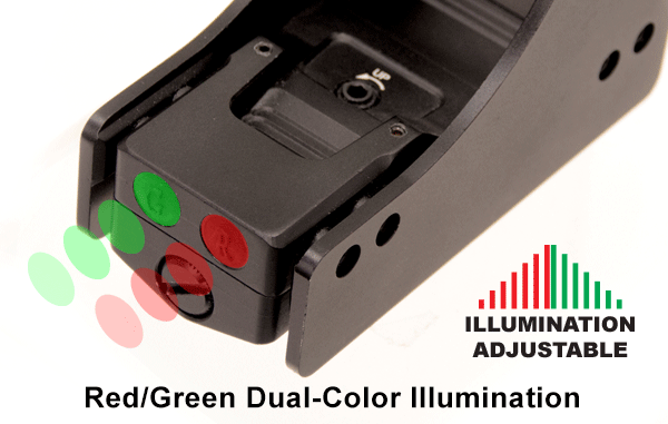 Коллиматорный прицел имеет подсветку метки красную и зеленую. Двухцветная подсветка прицельной марки позволяет прицеливаться с максимальным комфортом и точностью при любых условиях освещенности.