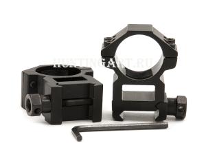 Корпус выполнен из алюминиевого сплава, поверхность анодирована, устойчива к коррозии. Каждое кольцо фиксируется на базе оружия стальным винтом с колесиком, который можно закрутить рукой. Кольца оснащены основанием Weaver и предназначены для установки прицела с трубкой, диаметр которой равняется 25,4 мм. В конструкции колец имеется технологическое отверстие, которое позволяет при установленном прицеле стрелять, используя открытые прицельные приспособления (целик, мушка).