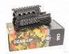 Две боковые длинные рельсы крепятся на цевьё и имеют по 7 прорезей на каждой рельсе, что даёт возможность выбора удобного расположения навесного оборудования. Цевьё и накладка изготовлены из высокопрочного армированного полимера и соответствуют всем армейским стандартам. Цевье позволяет установить на оружие переднюю рукоятку, тактический фонарь, коллиматор.