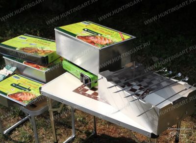 Коптильня-мангал GURMAN малого размера настоящий мини-шедевр для пикников и выездов на природу! Коптильня-мангал представляет собой уникальное предложение 3 в 1, благодаря которому можно наслаждаться копчеными продуктами, шашлыком или блюдами, приготовленными на гриле. В состав коптильни-мангала входят: коптильня, мангальное место, набор шампуров и оригинальная решетка, которая может быть использована для копчения или как решетка-гриль.