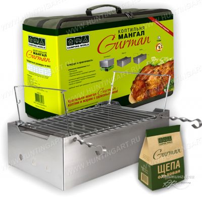 Коптильня-мангал Camping World Gurman, размер S (1 ярус), 4 шампура, решетка-гриль, щепа, чехол от Американской компании Camping.