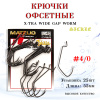 Офсетные крючки с серповидным загибом. Увеличено растояние от цевья до жала крючка, при этом, загнутое во внутрь жало позволяет избежать зацепов за подводные припятсвия. Отлично подходят для оснащения широкотелых приманок. Изготовлены из высокоуглеродистой стали.