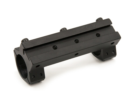 Не быстросъемный кронштейн моноблок с кольцами, устанавливается на планку типа «ласточкин хвост» 10-11мм (3/8). Выпускается в двух размерах в среднем и высоком, подходят для прицелов диаметров 25,4 мм. Длина кронштейна составляет 100мм.