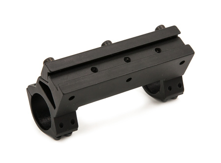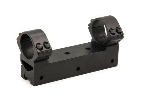 Не быстросъемный кронштейн моноблок с кольцами, устанавливается на планку типа «ласточкин хвост» 10-11мм (3/8). Выпускается в двух размерах в среднем и высоком, подходят для прицелов диаметров 25,4 мм. Длина кронштейна составляет 100мм.