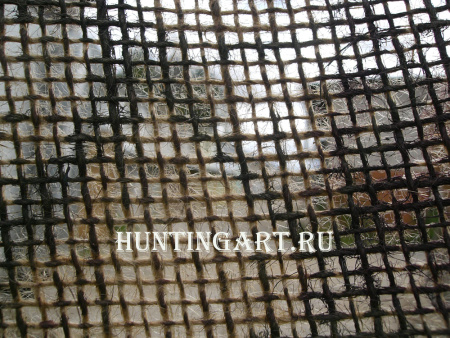 При необходимости укрытия крупных объектов стандартные кустки камуфляжной ткани могут скрепляться между собой с помощью шнура или веревки (люверсы или элементы крепления на мешковине отсутствуют).