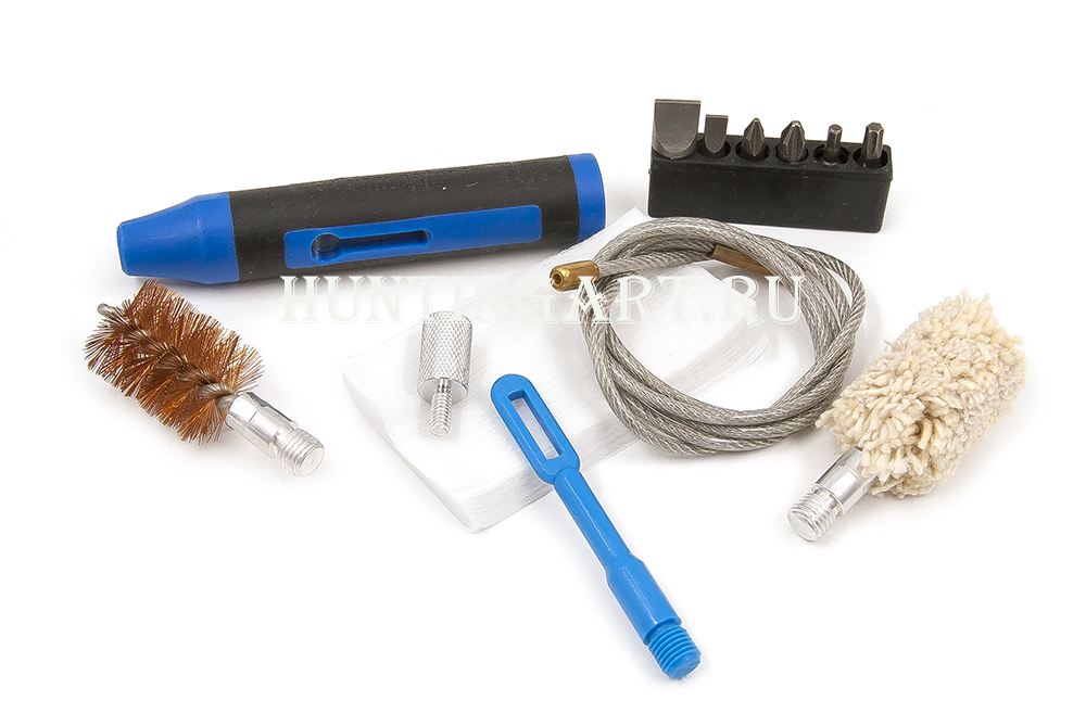 Простой и функциональный набор для чистки канала ствола оружия. Компактные размеры и необходимые аксессуары в комплекте дают возможность осуществлять чистку в полевых условиях. Комплектуется набором отвёрток (6шт) для осуществления необходимой разборки оружия, например снятия и очистки УСМ (ударно- спускового механизма). Рукоятка используется для отвёртки, для управления протяжкой и совместима с другими типами шомполов.