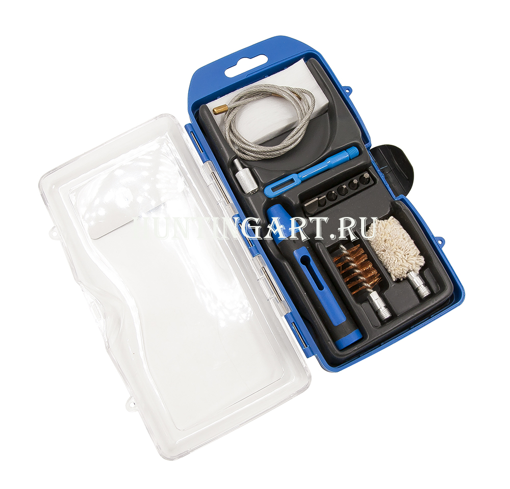 Данный набор отлично подойдет для чистки канала ствола оружия в полевых условиях. Небольшая коробка со всеми необходимыми инструментами. Уршик, пуховка, рукоятка и 6 съёмных бит для отвёртки, гибкая змейка, патчи.