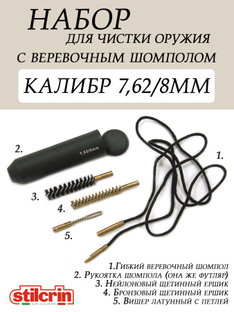 Набор для чистки Stil Crin в цилиндре с гибким веревочным шомполом от Итальянской компании Stil Crin.