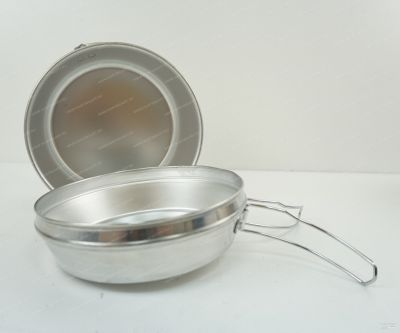 Удобный туристический комплект алюминиевой посуды из девяти предметов.
