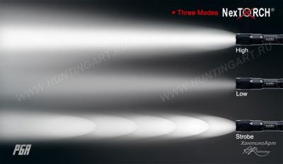 Изделие устанавливается на все типы стрелкового и охотничьего огнестрельного оружия при помощи кронштейнов NEXTORCH для тактических фонарей RM81 и RM82.