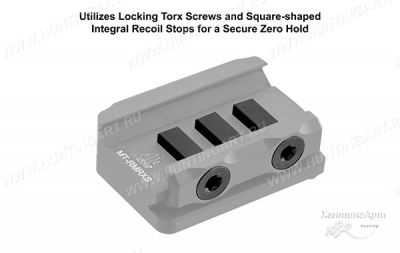 Благодаря наличию трех упоров и использованию двух винтов Torx обеспечивает сверхнадежное крепление прицела на оружии. Изготовлен на высокоточном станке с ЧПУ из заготовки авиационного алюминия 6061-T6. Имеет черное матовое анодирование.