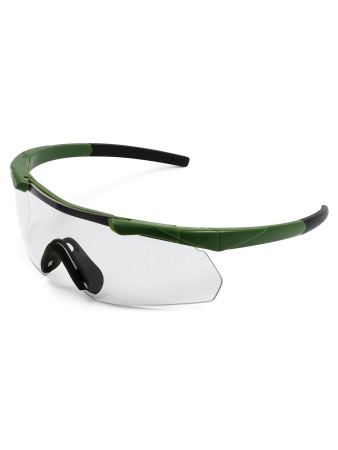 — GST-035-AG-C - Это защитные стрелковые очки с зелёной оправой и прозрачными линзами, которые подходят для работы при нормальном освещении. Такие линзы не искажают зрение и не вызывают усталости глаз.