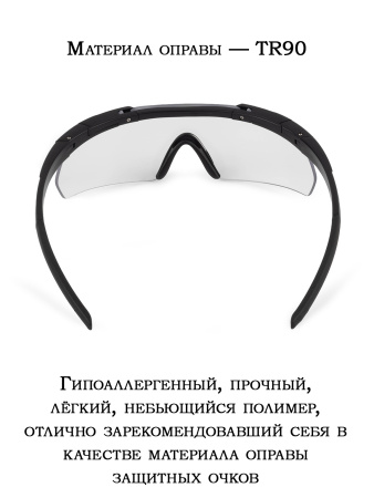 Стрелковые очки имеют переносицу из резины, что обеспечивает комфорт и удобство при ношении. Также они оснащены базовым антифогом и защитой от ультрафиолета UV 400, что гарантирует безопасность глаз при использовании. Очки из поликарбоната толщиной 2 мм обеспечивают защиту по стандарту ANSI Z87.1, что делает их идеальным выбором для стрельбы. Оправа выполнена из TR90 - гипоаллергенного, прочного и легкого полимера, который не бьется и отлично подходит для использования в экстремальных условиях.