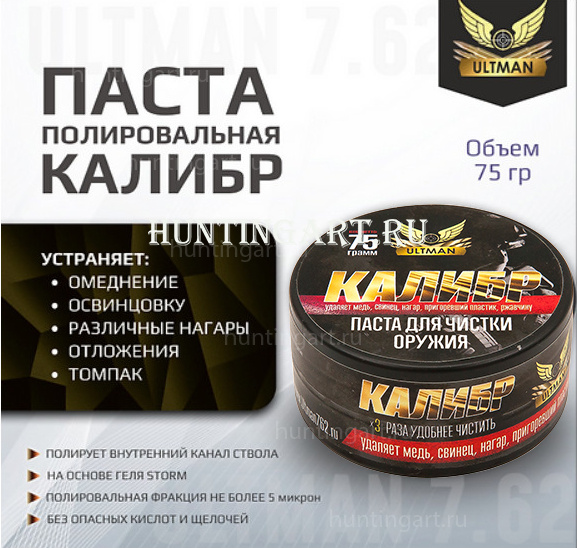 Оружейная полировальная очистительная паста «КАЛИБР» разработана специально для дополнительной чистки и одновременной полировки канала ствола, с целью устранения неровностей на поверхности канала а так же для окончательной финишной очистки. Грид не более 5 микрон.