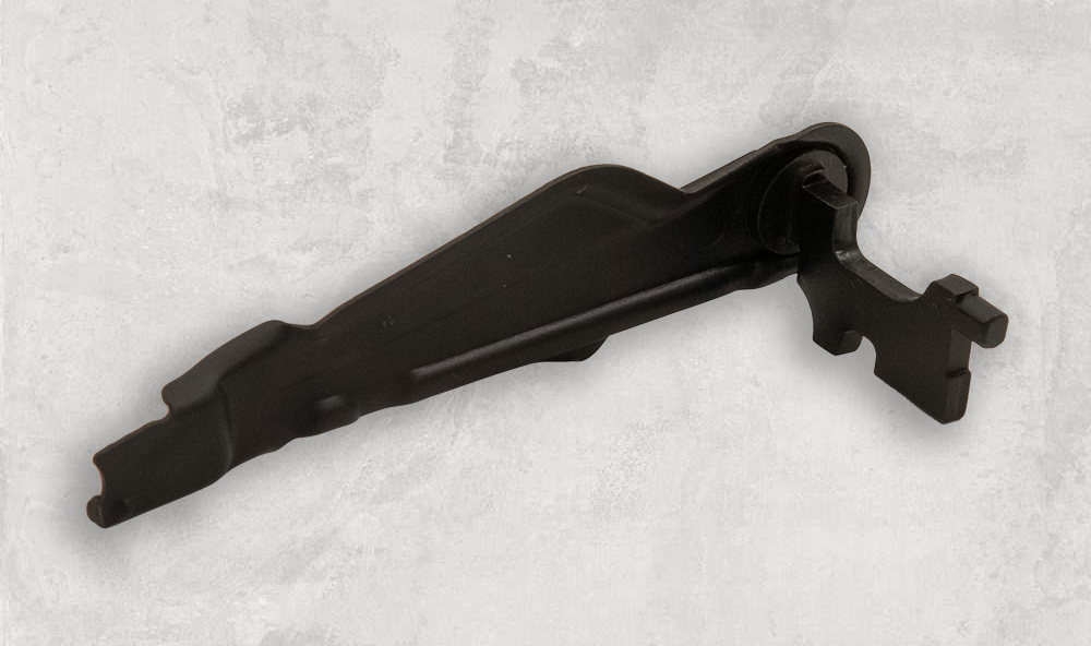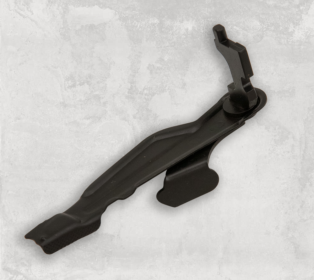 Предохранитель-переводчик огня для установки на Сайгу со складным прикладом. Перевод производится указательным пальцем.