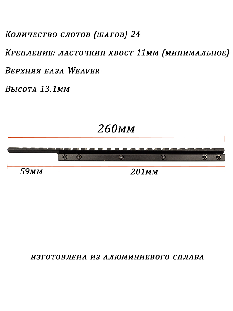 - Длина планки Weaver: 260 мм.