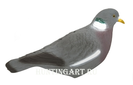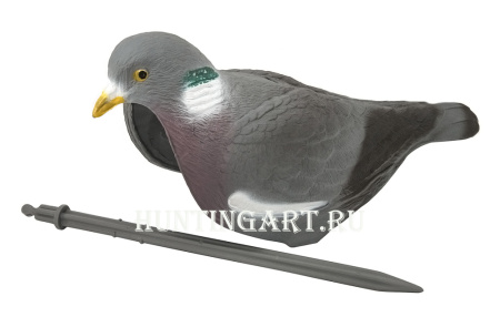 Чучела реалистичные, с рифленой поверхностью и детальной прорисовкой пера. Качественная многоцветная покраска матовой не бликующей краской. Корпуса голубя выполнены в форме "скорлупки" и за счет этого могут складываться один в другой тем самым уменьшая общий объем чучалок. В сложенном виде занимают очень мало места и удобны для хранения и транспортировки к месту охоты. Важно помнить, что при охоте на голубя важно количество выставленных муляжей вяхира, так как голуби осенью собираются в огромные стаи, которые кормятся на полях. Чтобы привлечь внимание этих стай - необходимо выставить как можно большее количество чучел, которые будут заметны на расстоянии.