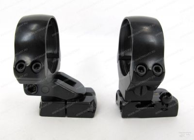 Стабильная, надежная конструкция для оптимального сохранения параметров пристрелки при повторной установке оптического прицела. Оптический прицел легко устанавливается и снимается одной рукой, так как у поворотных кронштейнов запирание заднего быка замком происходит автоматически.