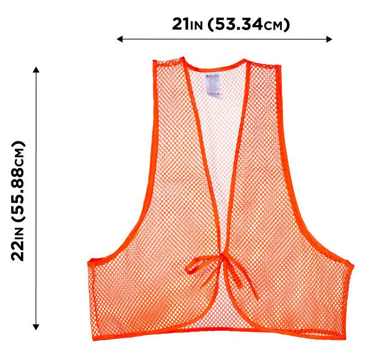 Жилет охотничий, изготовлен из легкого сетчатого полиэстера плотностью 100Den в ярко-оранжевом цвете. Застегивается жилет спереди на завязки. Жилет не имеет размера и поставляется как безразмерный. Жилет можно стирать в стиральной машинке.