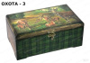 Полностью ручная работа. Выполнена из дерева, с нанесенным рисунком. В зависимости от модели, имеются ручки для переноски, магнитная защелка. На одной из шкатулок, на внутренней части крышки нанесено поздравление охотнику.