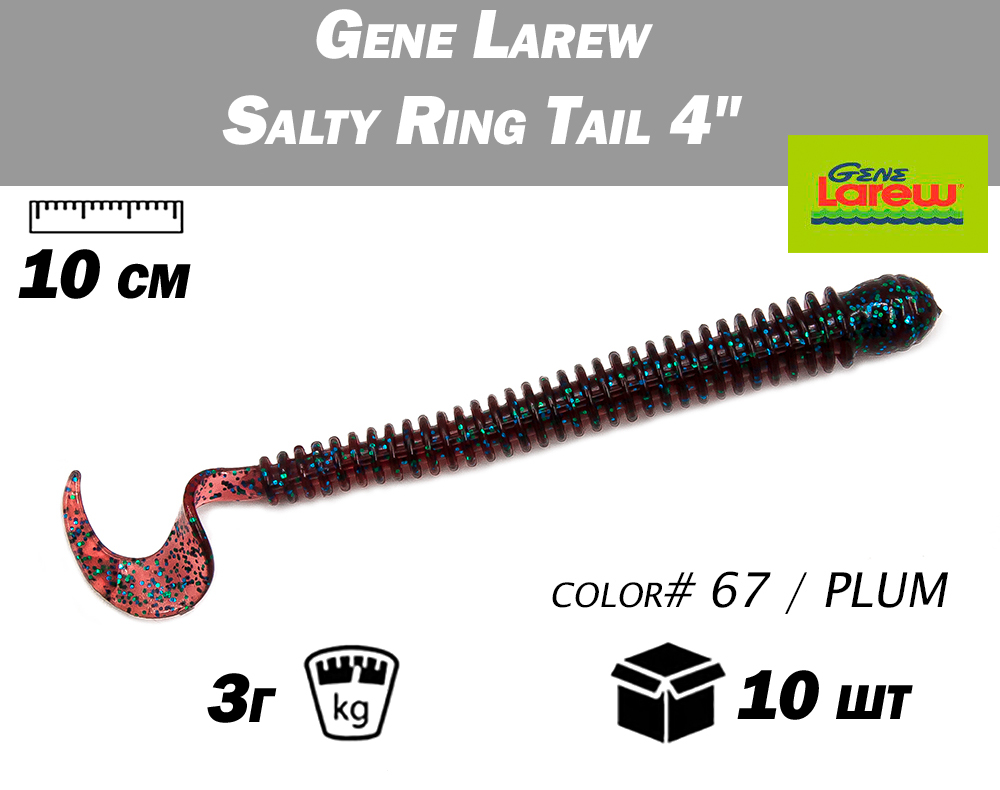Силиконовая приманка Gene Larew 4" Salty Ring Tail (10 см). Силиконовая приманка-червь с твистерным хвостиком.