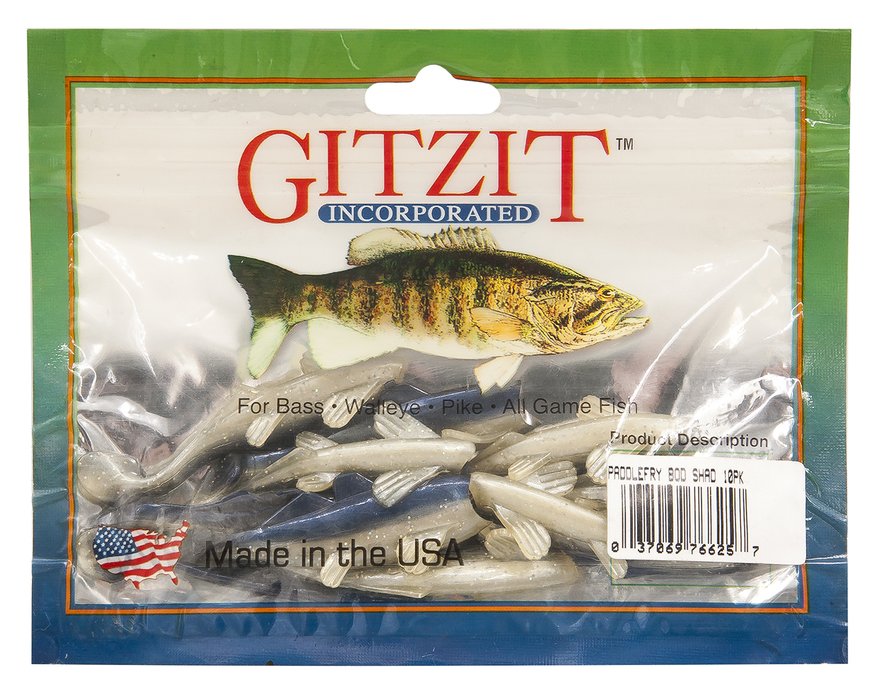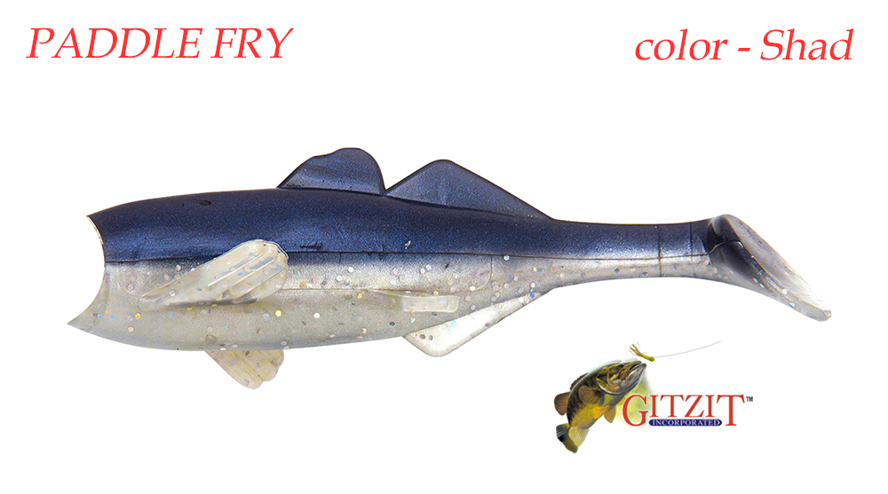 Gitzit Paddle Fry - реалистичная силиконовая приманка с тонкими вибрирующими плавниками, которая подходит для любой рыбы, включая судака и окуня. Может использоваться для джиг-лова, плавной проводки, троллинга и различных декораций. Приманка размером 2,5 дюйма идеально подходит для рыбалки на дне или в средней воде, где многие судаки и окуни могут быть пойманы.