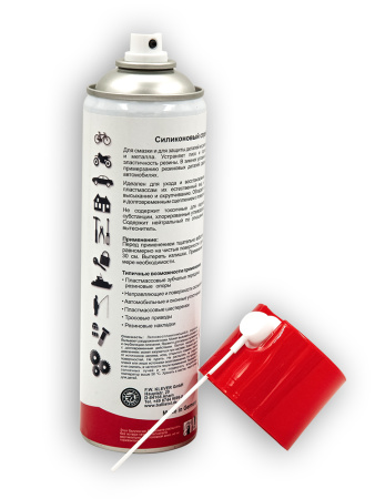 Силиконовый аэрозоль - это соединение, обогащённое силиконом, смазывает и защищает части, сделанные из каучука, полимеров, пластика и металлов. Проверенная совместимость со всеми материалами, используемыми в технике, промышленности и автомобилях. Рекомендуется для использования в пластиковых шестерёнках, пластиковых передаточных механизмах, каучуковых подшипниках, направляющих механизмах, контактных роликах, также как и в кабелях, оконных рамах и в обшивке автомобильных дверей, если она сделана из мягкой резины. Подходит для смазки патронов, заряжаемых в магазины - для уменьшения трения и снижения вероятности перекоса, задержки при подаче патрона из магазина в патронник.