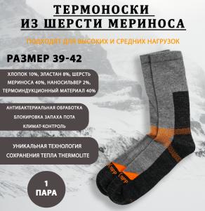 - Состав: 40% - Merino wool, 40% - Thermolite, 8% - Lycra (эластан), 10% - Cotton, 2% - Nanosilver.