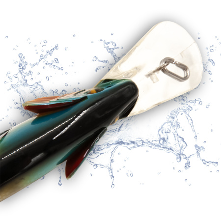 Идеальная балансировка тела позволяет осуществлять быстрое заглубление. При этом, поведение приманки отлично контролируется на любой скорости, что позволяет значительно расширить спектр применяемых техник проводки. Дополнительный звуковой эффект при проводке создает уникальная погремушка выполненная из подшипников из нержавеющей стали размещенных в герметичном патроне внутри тела приманки. Эта приманка со специфической окраской – жабры и часть брюшка данной модели окрашены в кроваво красный цвет. Его реалистичные 3D глаза и жаберные пластины обеспечивают естественный вид приманоки.