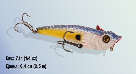 Поверхностная безлопастная приманка-поппер, предназначенная для рывковой анимации.