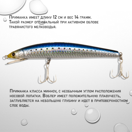 Оригинальная приманка для твичинкга от Японской компании Halcyon System. При рывках идёт в очень широком коридоре, не характерном для приманок такого размера. Подходит для облавливания обширных мелководий как с лодки так и сберега. Очень далеко и точно забрасывается.
