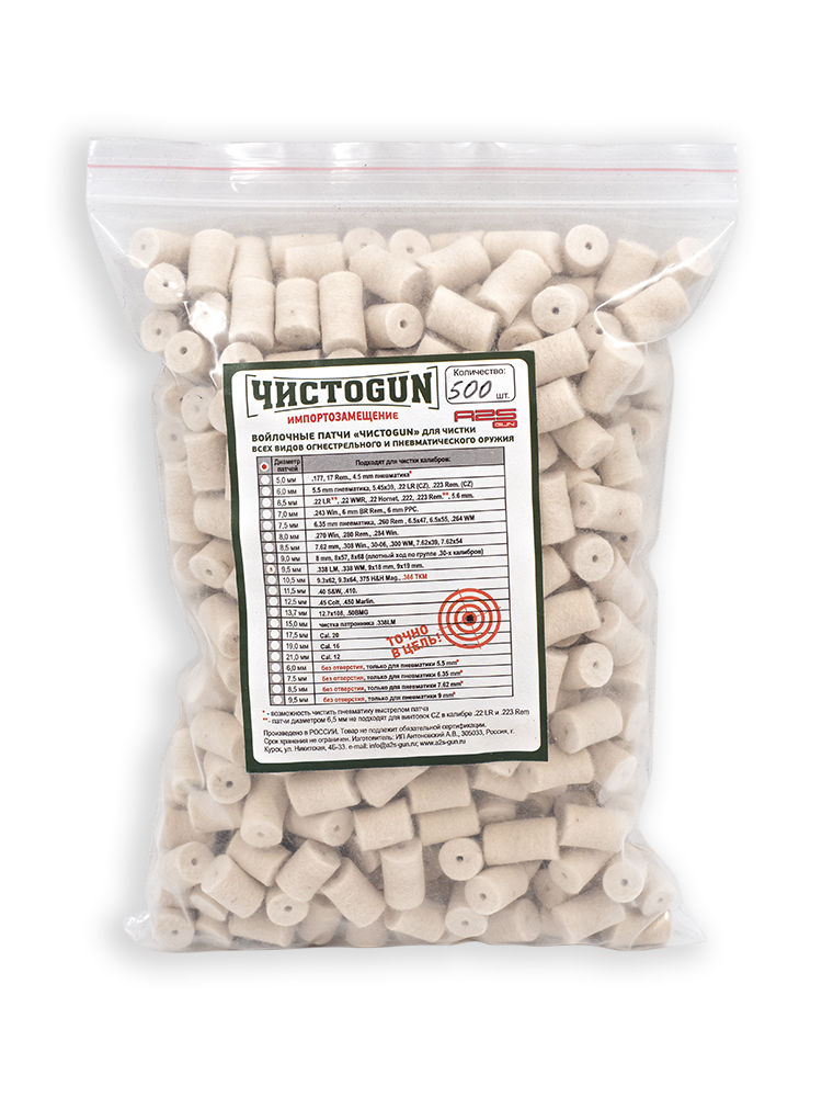 Войлочные патчи диаметром 9,5 мм от Российской компании производителя ЧИСТОGUN.