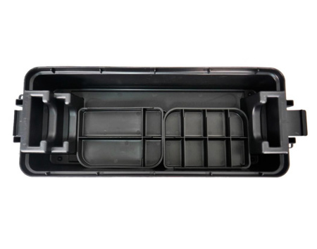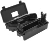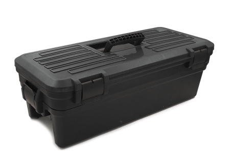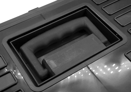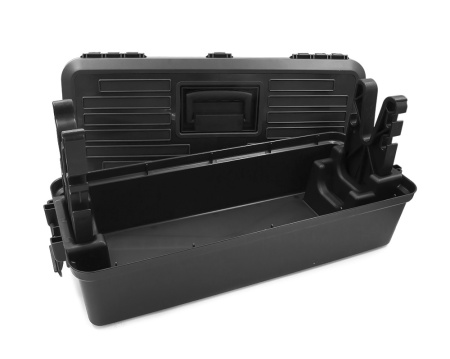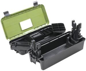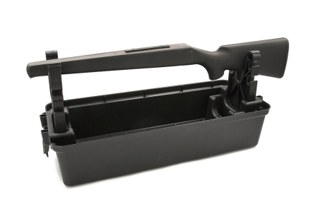 Переносной пластиковый центр для чистки и ухода за нарезным и гладкоствольным оружием, черный с зеленой крышкой. Визуально центр представляет собой компактный кейс из химически стойкого полипропилена с удобной утопленной ручкой, позволяющей экономить место при его хранении и транспортировке.