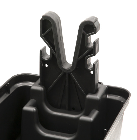 Внутренняя часть центра состоит из двух уровней. Нижний оснащен двумя упорами-втулками для установки и последующей чистки оружия. При установке лафета предусмотрены два монтажных положения для удобного доступа к оружейной конструкции. Также на нем расположены отсеки для хранения оружейной химии. Съемная верхняя часть центра оснащен отсеками для хранения инструментов для чистки (ёршики, вишеры, адаптеры, шомпола). Отдел имеет две дополнительные вставки ячеистого типа для мелких предметов - на 8 и 4 отделов. Для удобной транспортировки имеется прочная, комфортабельная ручка. Выполнен из ударопрочного пластика.